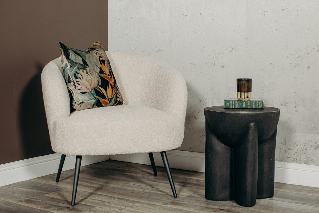 Xia Round Lamp Table in Black – a statement piece that adds a touch of industrial chic to your living space. With its natural colour brushed concrete finish and rough textured surface, this lamp table exudes rustic charm and modern style.